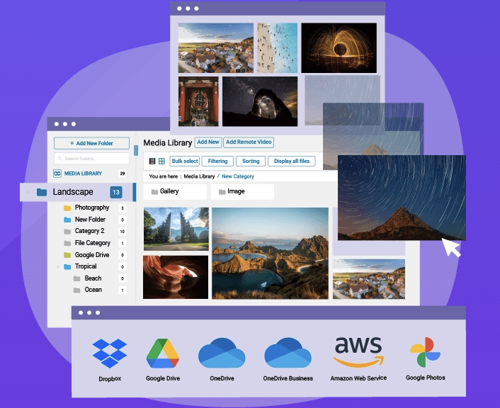 WP Media Folder können Sie Dateien kategorisieren, Ordner mit Cloud-Speicher synchronisieren, beeindruckende Galerien erstellen und sogar Bilder ersetzen, ohne Links zu unterbrechen.