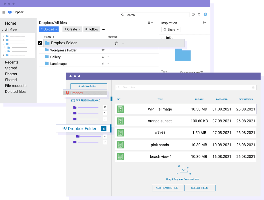 Είναι ένα πρόσθετο plugin που επιτρέπει τη διπλής κατεύθυνσης συγχρονισμό μεταξύ του διαχειριστή αρχείων WordPress και του cloud storage Dropbox, επιτρέποντας την απρόσκοπτη διαχείριση αρχείων και συγχρονισμό μεταξύ και των δύο πλατφορμών.