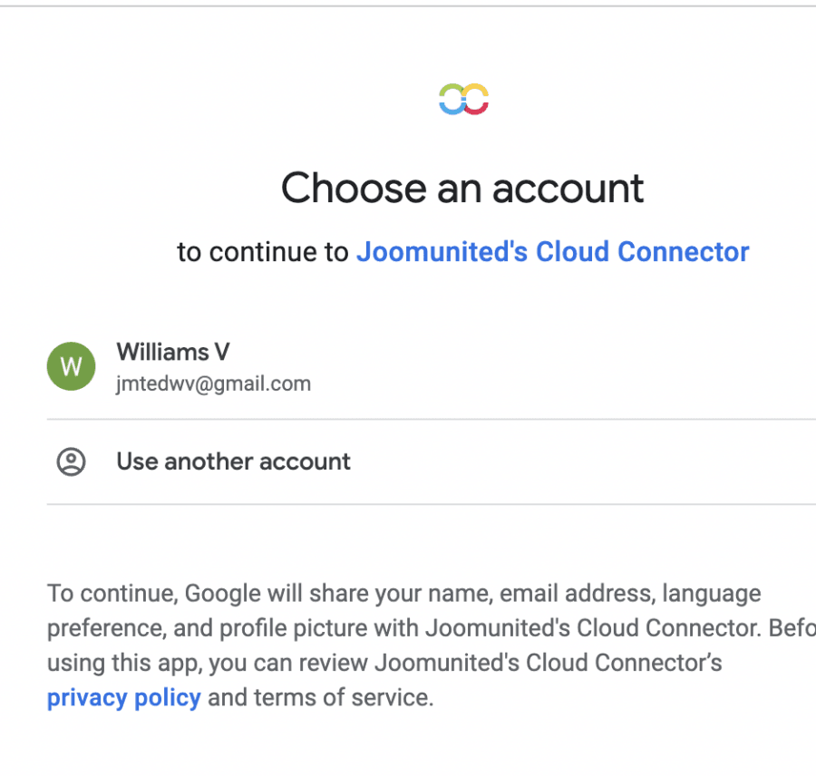 Finalmente, seleccione su cuenta y apruebe los permisos para iniciar sesión y conectar WP file Download a su cuenta de Google.