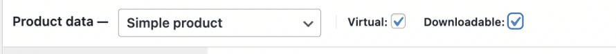 También puede editar un producto existente, en caso de que haya creado un nuevo producto, agregue los detalles del producto como lo hace normalmente y luego desplácese hacia abajo hasta la Datos del producto , aquí, seleccione la Descargable en la barra superior.