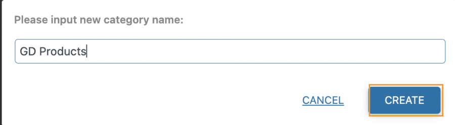 Luego, agregue el nombre de la categoría, para este tutorial lo configuraremos como Productos GD y luego haga clic en crear .