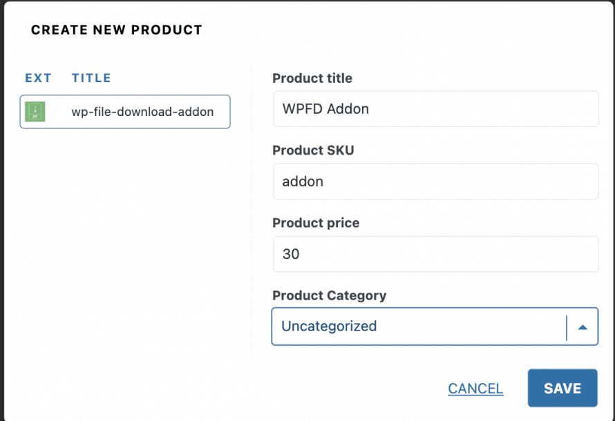 Aparecerá una ventana emergente que le permitirá agregar los detalles de su producto, podrá agregar el título, SKU, precio y si desea asignarlo a una categoría.
