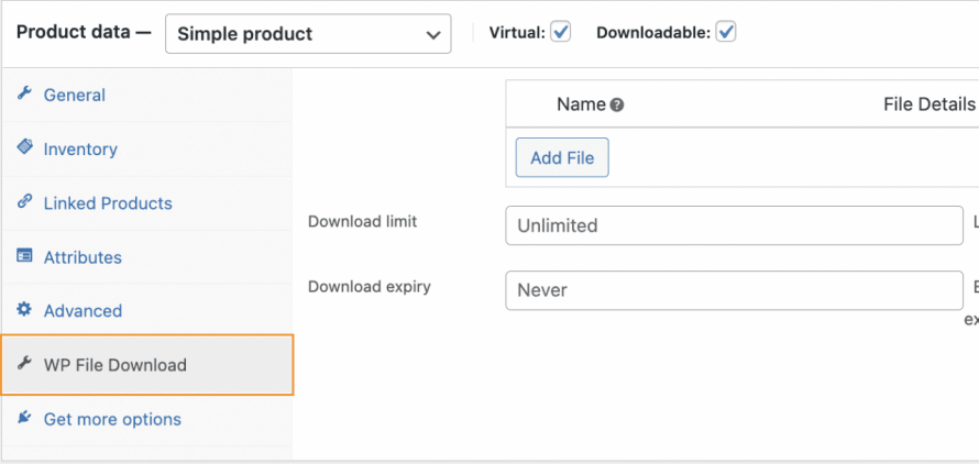 Esto hará que aparezca la opción WP File Download , pulsa sobre ella para ver todas las opciones disponibles.