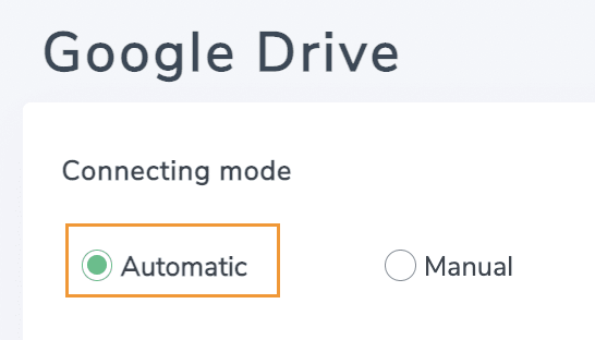 Hay 2 opciones para lograr esta conexión, la primera es manual y la segunda es automática, siendo la última la más rápida ya que utiliza una aplicación de Google ya verificada/creada, solo tendremos que iniciar sesión en nuestra cuenta de Google vinculado a Google Drive.