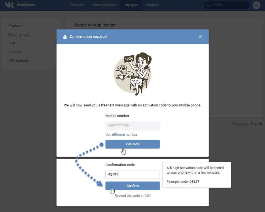 Une fenêtre contextuelle s'affiche, cliquez sur Obtenir le code , vous devez ensuite saisir le code de confirmation envoyé à votre mobile. Enfin, appuyez sur Confirmer .