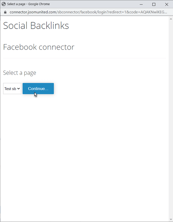 Puis sur une popup avec la page sélectionnée ci-dessus, cliquez sur le bouton Continuer pour terminer.