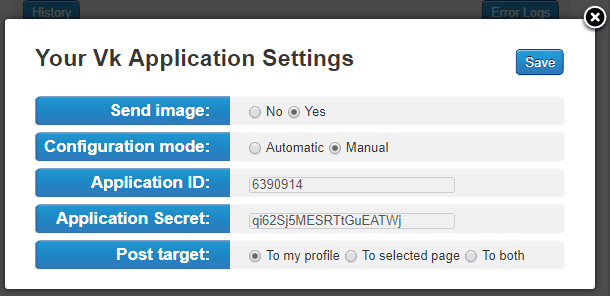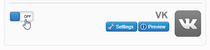Nous avons créé une application VK dédiée pour vous aider à publier facilement sur les réseaux sociaux. Depuis Social Backlinks vue du composant Social Backlinks , cliquez sur le bouton VK Off / On .