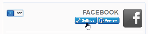 Vous devez remplir au moins 2 champs dans la configuration de Facebook afin d'être connecté. Placez d'abord votre souris sur le bloc Facebook, à droite de votre écran puis cliquez sur le bouton «Paramètres».