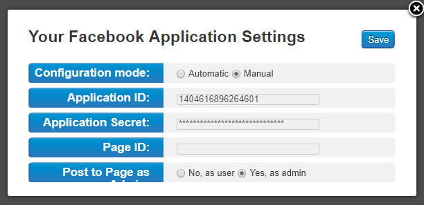 Copiez et collez dans vos App ID et App Secret, puis cliquez sur Enregistrer .