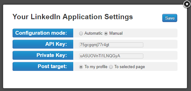 - Utilisez votre application créée sur Facebook pour obtenir une clé API et/ou une clé secrète : mieux pour un volume élevé de publications sur les réseaux sociaux