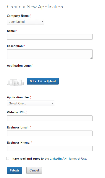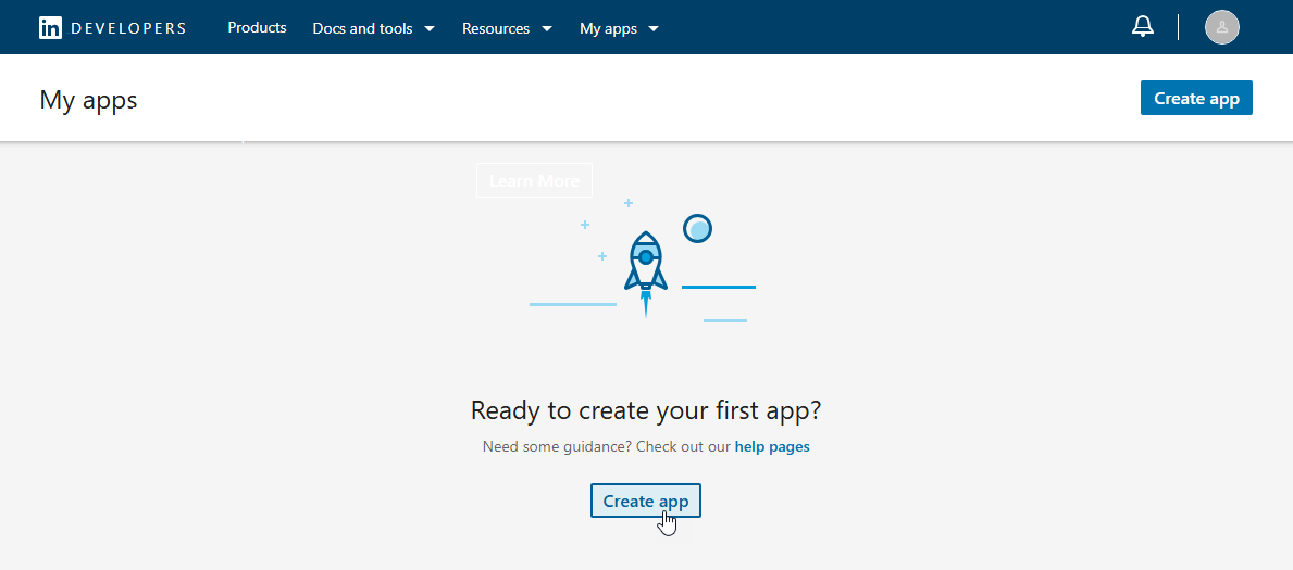 Un compte LinkedIn est requis, puis cliquez sur Créer une application.