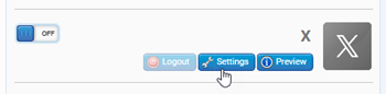 Vous pouvez maintenant copier la clé du consommateur et le secret du consommateur dans la configuration X des Social Backlinks afin de vous connecter. Placez d'abord votre souris sur le bloc X, à droite de votre écran puis cliquez sur « Paramètres » .