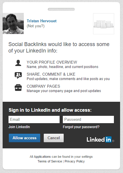 Vous avez terminé, LinkedIn est désormais connecté aux Social Backlinks.
