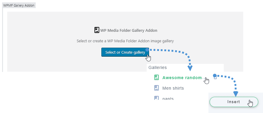 Cliquez sur «Sélectionner ou créer une galerie» et sélectionnez la galerie que nous avons créée auparavant et cliquez sur «insérer».