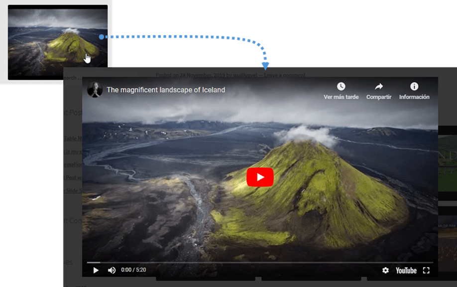 Vous pouvez maintenant cliquer sur vos vidéos et une lightbox s'ouvrira pour lire votre vidéo.