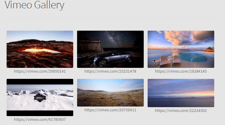 Donc vous n'aimez pas utiliser youtube et vous préférez utiliser Vimeo, ne vous inquiétez pas, il y a aussi la possibilité de créer une galerie Vimeo il vous suffit de suivre le même processus que vous avez suivi pour créer la galerie youtube et publier vous verrez votre superbe galerie Vimeo;).