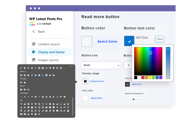 Le plugin comprend huit thèmes intégrés avec des dispositions et des options de style uniques, permettant une personnalisation complète des couleurs, des icônes, des images, des effets de survol et des animations pour correspondre à la conception de votre site.