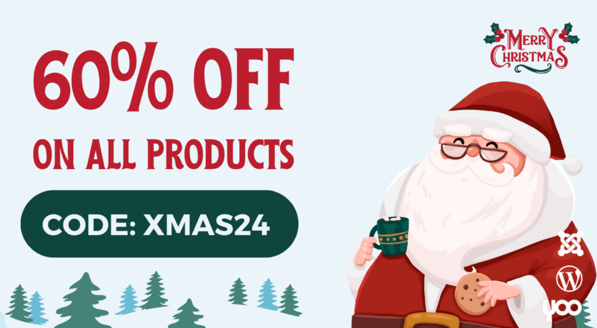 Natal dan Tahun Baru ini, JoomUnited menyebarkan keceriaan liburan dengan menawarkan diskon 30% untuk semuanya — tanpa pengecualian! Baik Anda mengupgrade alat, memperbarui langganan, atau membeli salah satu bundlemenakjubkan kami, Anda akan mendapatkan harga terbaik musim ini.