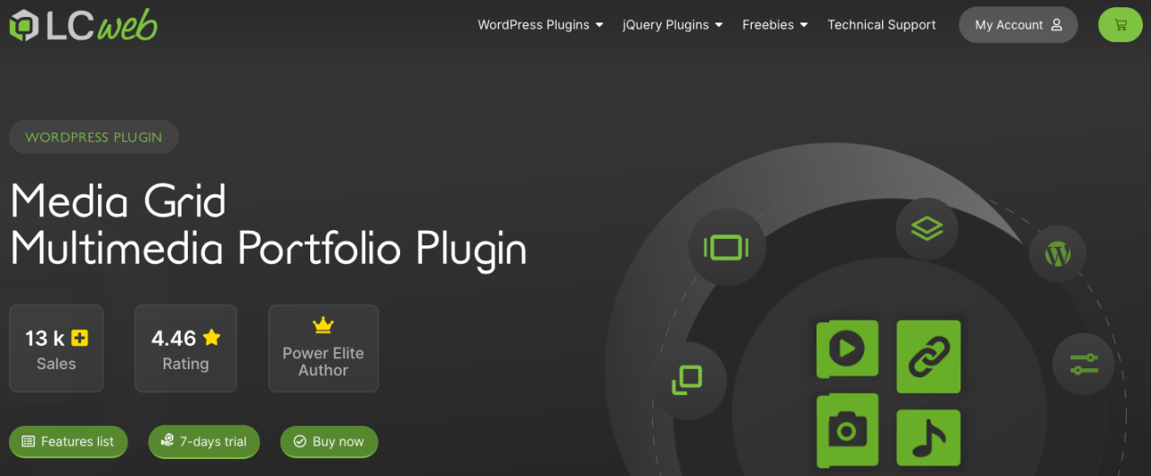 Media Grid adalah plugin portofolio premium lainnya yang dijual di CodeCanyon dengan lebih dari 11,7 ribu penjualan dan peringkat bintang 4,5. Ini memungkinkan Anda membuat tata letak tanpa batas, termasuk filter dan penomoran halaman.