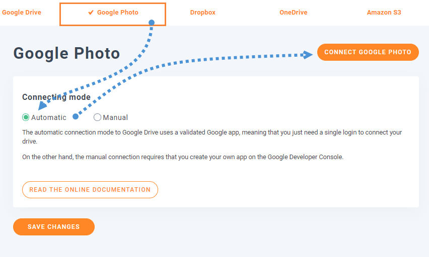 Nell'altro modo, la Manuale , dovrai creare un'App di sviluppo Google come spiegato qui , non proprio complessa ma potrebbe richiedere qualche tempo in più rispetto alla modalità Automatica, dopo aver creato l'App ti basterà incollare l' ID e Secret in Settings > WP Media Folder > Cloud > Google Photos , quindi collegalo e basta :)