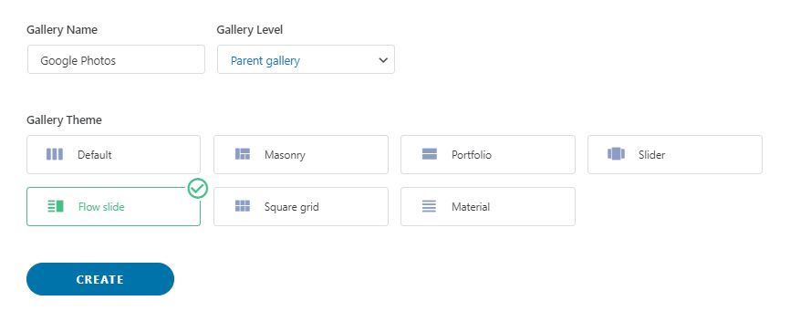 Per questo, fai clic su +Aggiungi nuova galleria , aggiungi il tipo e seleziona il tema della galleria che desideri utilizzare.