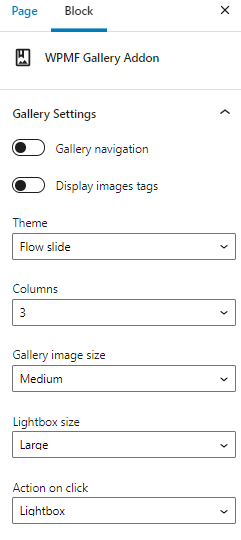Ora completa tutte le impostazioni per la tua galleria, quindi vai al tuo post/pagina per pubblicare la galleria, non importa quale editor di pagine utilizzi poiché WP Media Folder è integrato con tutti i principali Page Builder, quindi avrai un blocco dedicato e hai anche l' opzione Shortcode , quindi in pratica puoi aggiungere la galleria dove vuoi.