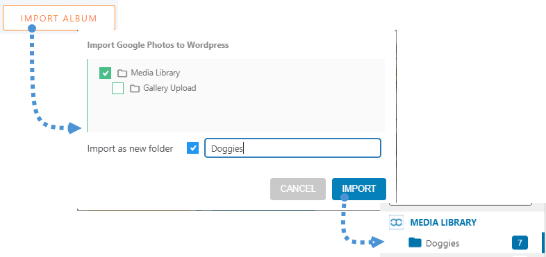 Quindi da qui, puoi selezionare molte immagini o un album e importarlo nella tua libreria multimediale, per questo, fai clic su Importa album dopo aver selezionato l'album, quindi, seleziona dove vuoi importarlo, puoi impostare il nome del nuovo cartella, quindi fai clic su importa, apparirà nella tua libreria multimediale.
