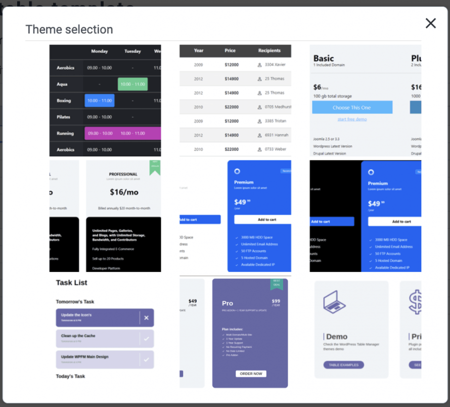 Questa è un'altra tabella del piano che funziona meglio quando vogliamo un tema scuro per impostazione predefinita e ha anche più funzionalità a seconda del piano