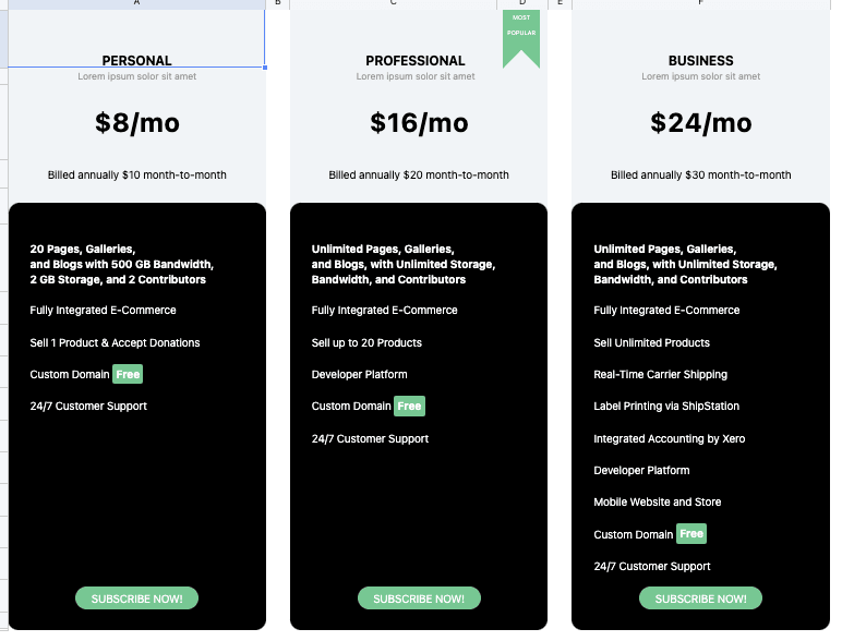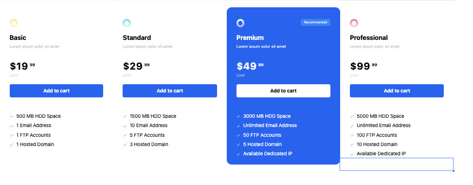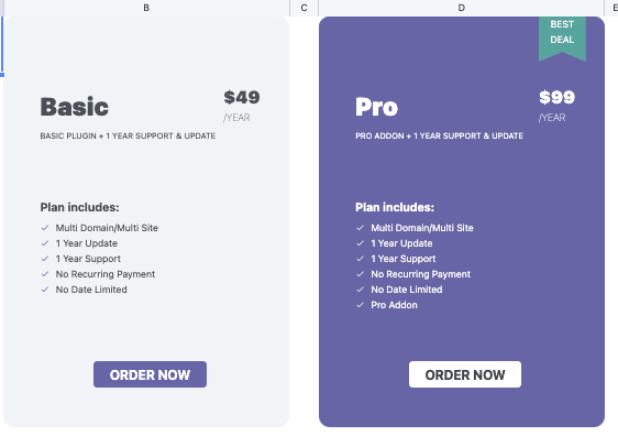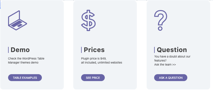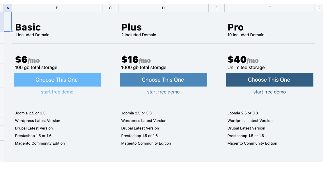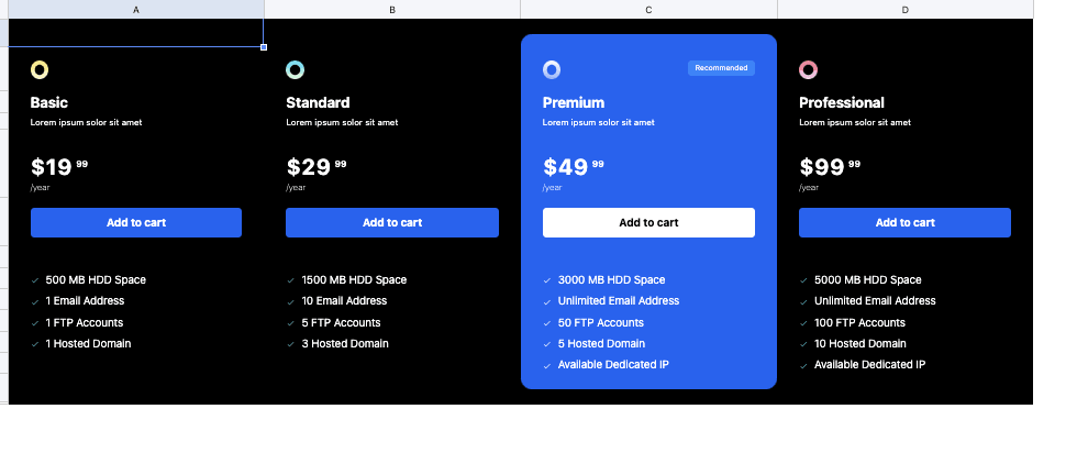Questa tabella si adatta perfettamente quando vogliamo offrire servizi o piani sul nostro sito.