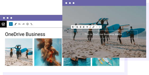 この統合は Gutenberg ブロックと完全に互換性があり、 OneDrive ビジネスメディアをシームレスに挿入できます。 OneDrive ファイルを使用して画像ギャラリーを作成することも可能で、レスポンシブなレイアウトや OneDrive サーバーからの直接配信によりサイトのパフォーマンスを最適化するオプションがあります。