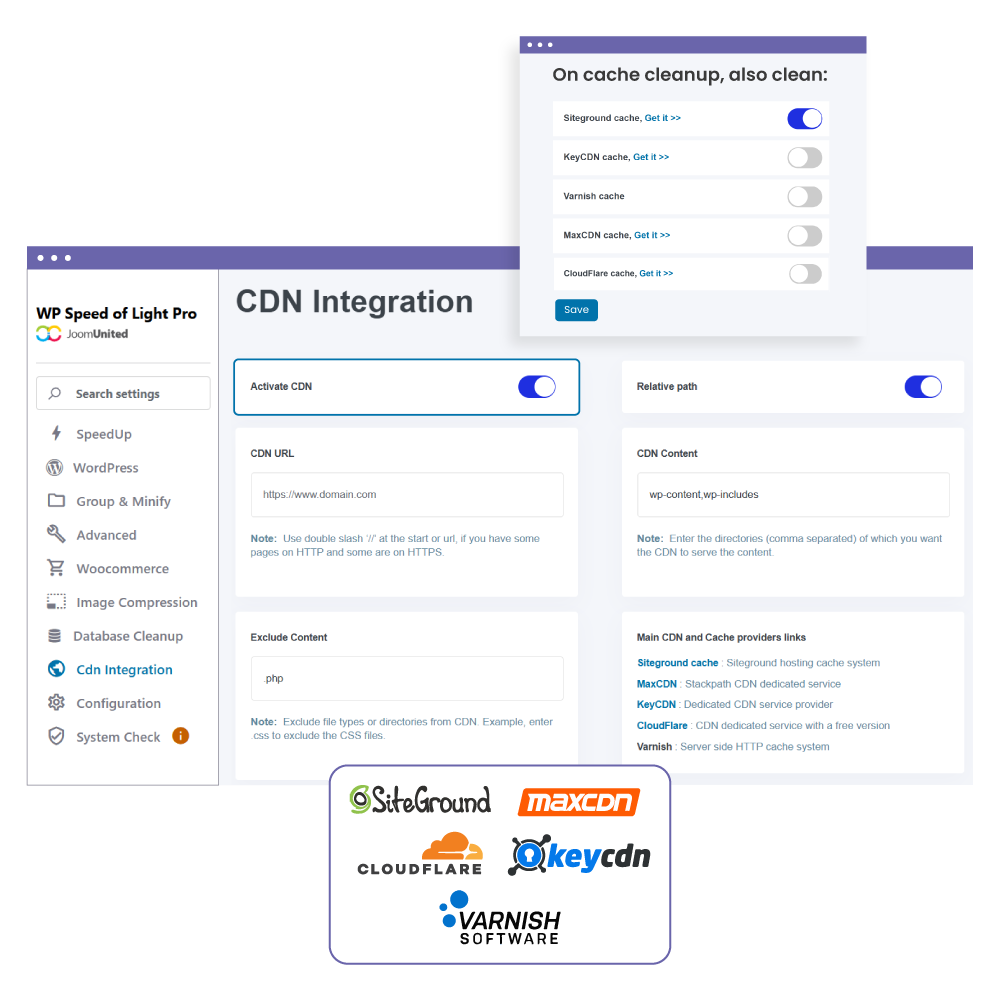 WP Speed of Light 은 Cloudflare, Amazon Cloudfront, MaxCDN, KeyCDN 등과 같은 인기 있는 Content Delivery Network과 원활하게 통합되어 빠르고 국제적인 콘텐츠 전송을 제공합니다.
