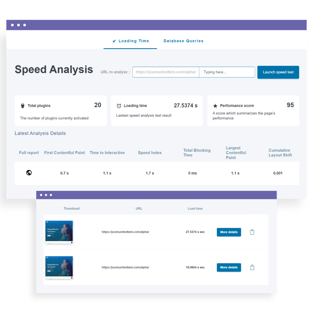 웹사이트 최적화는 성능을 테스트하여 어떤 요소를 최적화하여 성능을 높일 수 있는지 결정하는 것입니다. WP Speed of Light 를 사용하면 동일한 페이지에서 여러 테스트를 실행하고 비교 테이블을 열 수 있습니다. WebPageTest API와 통합하여 다음과 같은 다양한 요소에 대한 자세한 속도 테스트를 실행합니다