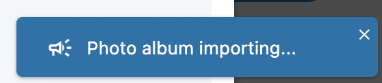 Po kliknięciu Importuj w prawym górnym rogu zobaczysz powiadomienie informujące, że obrazy są importowane. Import zakończy się, gdy ten komunikat zniknie.