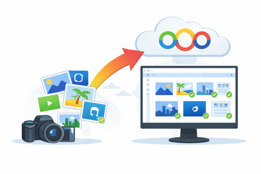 Witryny z galeriami, zdjęciami produktów lub zasobami do pobrania korzystają z automatycznej synchronizacji i uporządkowanej organizacji.