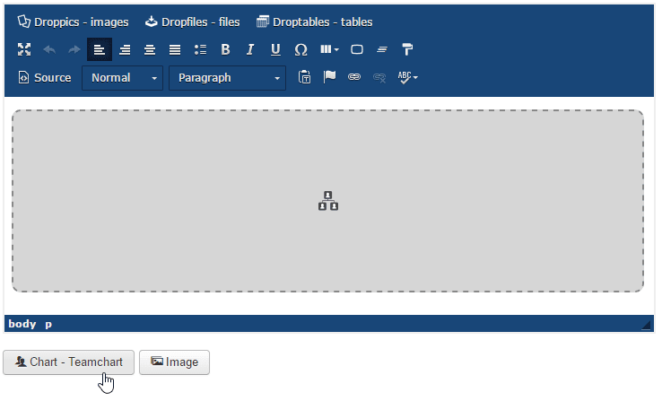 Huvudidén med Team Chart displayen är att ställa in allt från din WYSIWYG-redigerare. Team Chart displayen fungerar på alla Joomla WYSIWYG-redigerare. Du kan till exempel använda den i inlägg och sidor.