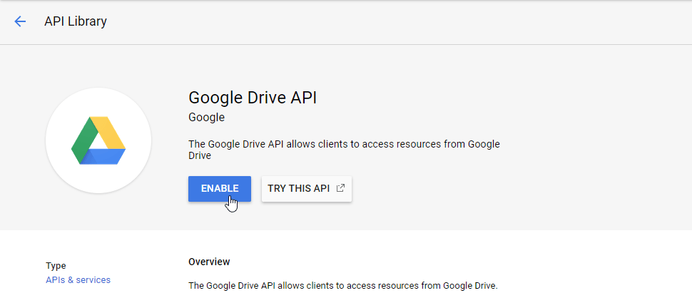 หากนี่เป็นครั้งแรกที่คุณใช้ Google Drive API คุณจะต้องเปิดใช้งาน