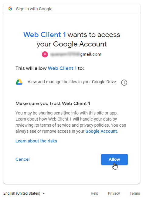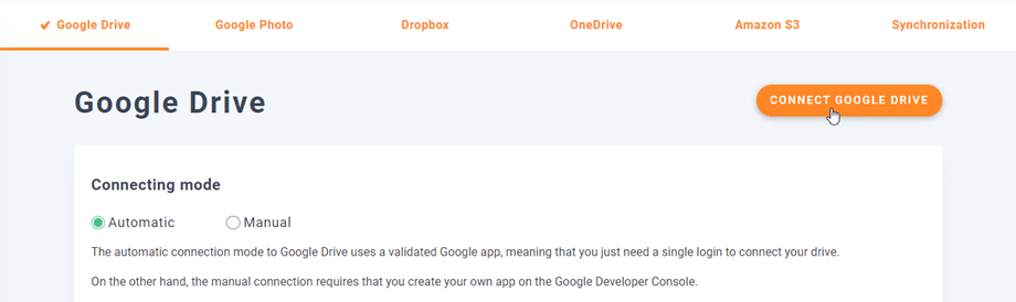จากนั้นคุณสามารถเชื่อมต่อบัญชี Google Drive โดยใช้ โหมดแมนนวลได้ :