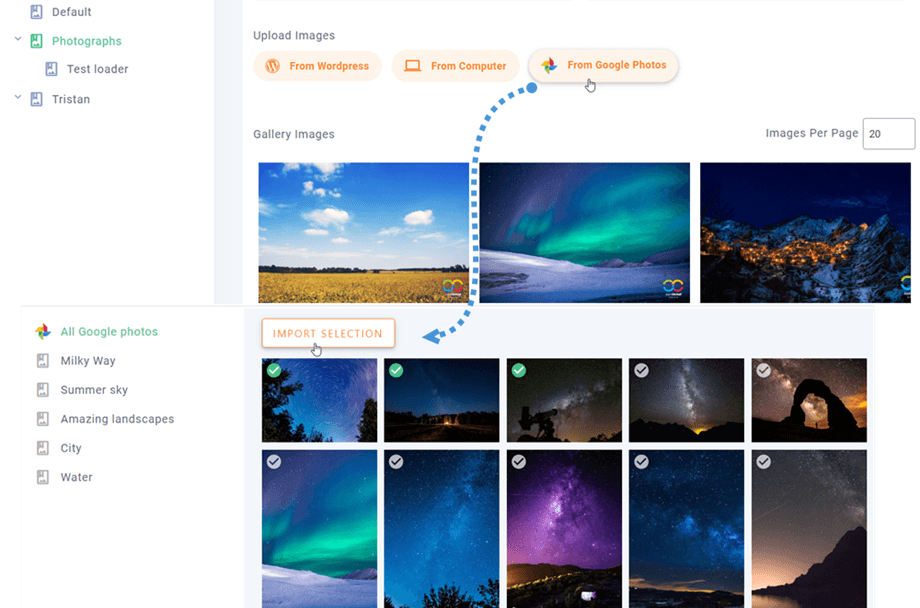 หลังจากนำเข้าอัลบั้มจาก Google Photos เป็นโฟลเดอร์ตามขั้นตอนข้างต้นแล้ว คุณสามารถสร้างแกลเลอรีจากโฟลเดอร์นั้นได้ โปรดไปที่แกลเลอรีจากโฟลเดอร์ใน เอกสารประกอบของแกลเลอรี เพิ่มเติมสำหรับรายละเอียดเพิ่มเติม