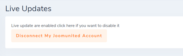 ปุ่มจะเปลี่ยนเป็นสถานะเชื่อมต่อ ยินดีด้วย! ตอนนี้คุณสามารถอัปเดตส่วนขยาย JoomUnited ทั้งหมดบนเว็บไซต์นี้ได้! หากการเป็นสมาชิกของคุณหมดอายุ คุณจะได้รับลิงค์ต่ออายุและข้อความที่อธิบาย