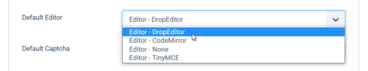 หากต้องการใช้ DropEditor คุณต้องตั้งค่าเป็นค่าเริ่มต้นในการกำหนดค่า Joomla G lobal > แท็บไซต์ ตั้งค่า DropEditor เป็นค่าเริ่มต้น