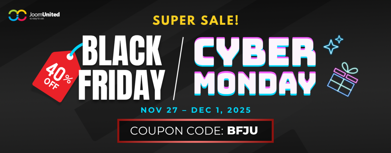 Ưu đãi tốt nhất cho Black Friday và Cyber Monday 2025: Tiết kiệm 40% cho tất cả các gói thành viên JoomUnited