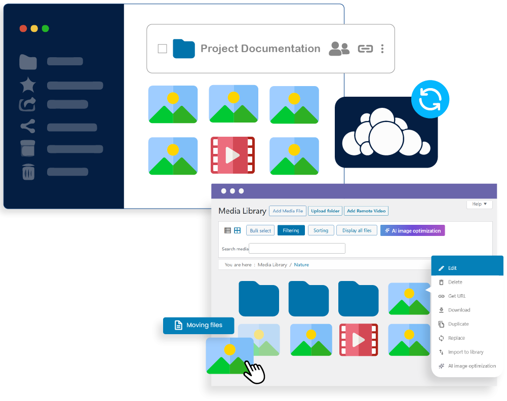View, organize, and rename your OwnCloud folders directly from WordPress. Use the familiar WP Media Folder interface to move files and structure your OwnCloud storage the way you want, all from your WordPress dashboard.